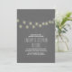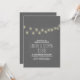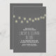Romântica, elegante e moderno convite de janto de ensaio com luzes de cordas - lâmpadas penduradas no fundo do quadro de cinza das ardósias. — Entre em contato comigo se tiver dúvidas sobre o design ou se tiver uma solicitação de cor personalizada. — Se você pressionar o botão PERSONALIZAR TI, poderá alterar o estilo da fonte, a cor, o tamanho, movê-lo etc. ele lhe dará mais opções!