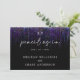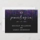 Salvar Data Moderno Abstrato - Bold edgy guirlanda roxa brilhante cascata descendo a página, em caligrafia manuscrita está "lápis nos" - iniciais do casal no topo - o resto do texto é simples e limpo - tudo em um fundo preto. Papelaria de casamento elegante.