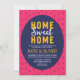Celebrando sua nova casa e convidando amigos e família com este moderno Convite de festas de Aquecimento Doméstico com as palavras "Home Sweet Home" contra um vibrante padrão de fundo rosa e azul. Personalize este convite substituindo o texto do marcador de posição no modelo. Para obter mais opções, como alterar a fonte e seu tamanho, clique no botão "Personalizar". Este convite também inclui um lado traseiro com padrão. *Observe que a Marca d'água do Zazzle que aparece na visualização de zoom não aparecerá no produto impresso final. © Rosewood e Citrus
