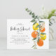 Convide familiares e amigos para o seu evento com este convite para chás de casamento botânicos. Ele apresenta ilustrações aquarelas de laranjas, limões, laranjas floridas e verde com um padrão de citros correspondente. Personalize adicionando o nome, data, hora, local, endereço e outros detalhes do evento. Este convite cítrico é perfeito para festas de casamento de jardim e de verão. Itens correspondentes estão disponíveis.