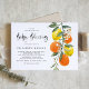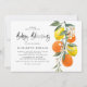 Convide familiares e amigos para o seu evento com este convite de bênção botânica para bebês. Ele apresenta ilustrações aquarelas de laranjas, limões, laranjas floridas e verde com um padrão de citros correspondente. Personalize adicionando um nome, data, hora, local, endereço e outros detalhes do evento. Este convite cítrico é perfeito para o jardim e bênçãos de verão. Itens correspondentes estão disponíveis.