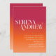 O céu sunset inspirou o gradiente ombre com o tema cor de pêssego laranja viva magenta, o moderno roteiro personalizado convite de casamento. Este cartão é facilmente editável. Se precisar de ajuda para a personalização deste produto ou se precisar de mais produtos correspondentes para esta coleção, envie-me gentilmente o Zazzle.