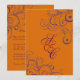 As cores do fundo e do texto são personalizáveis. Convites de casamento laranja mandarina com redemoinhos de ameixa em fundo personalizável.