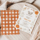 Laranja do Dia das Bruxas Nosso Pequeno Chá de fraldas de Boo Convite à neutralidade de gênero outono ou convite para chá de fraldas de outubro com dois fantasmas, abóboras laranja e branca e folhagem de outono.