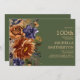Elegante e na moda 100.o convite de aniversário para mulheres com flores de cor-de-água laranja/ferrugem queimadas e azul marinho e verde-verde num fundo verde-oliva. Entre em contato comigo para obter assistência com a personalização ou para solicitar correspondência ou coordenação de produtos Zazzle.
