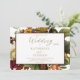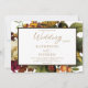 Um buquê floral de feto etéreo em tons de branco de inverno, ouro, laranja e vermelho escuro com verde em um painel branco, dourado e preto sobre um fundo branco convida seus hóspedes para o que é certamente uma ocasião rústica memorável de "Casamento". A parte de trás apresenta um fundo preto. Basta adicionar seus nomes e detalhes do casamento para completar. Design composto por Holiday Hearts Design (direitos reservados).