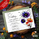 Convites Laranja Vibrante e Flores Selvagens Roxas