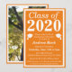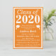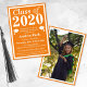 Use este Convite de Foto para Graduação da Classe Branca Laranja de 2024 para honrar seu formando com as cores escolares. Personalize com seus detalhes de ano de aula, escola e festa. A parte de trás apresenta a foto do seu formando. A classe de 2024 é escrita em uma fonte clássica em branco com um fundo laranja. Uma borda branca e laranja circula este tema do espírito escolar.