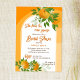 Laranjas de citros ela encontrou seu principal modelo de chá de panela de verão espremido. Citrus temed chá de panela. Alcachos laranja com laranjas, moderna borda de arco branco, florais laranja e folhas verdes, cor brilhante e ousada para personalidades alegres.