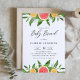 Convide a família e os amigos para o seu lanche de chás de fraldas com este convite de verão. Apresenta ilustrações em aquarela de toranjas, laranjas, florais e verde. Este convite aos citros será perfeito para chás de fraldas de verão. Personalize adicionando os detalhes do evento.