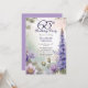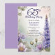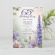 Elegant larkspur and water lilies floral design "65th Birthday Party" design featuring a floral frame of purple larkspur and water lilies on a pastel-toned watercolor background.