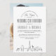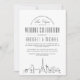 Imaginem e entusiasmem seus futuros convidados de casamento que vão viagem de longe para sua cerimônia de casamento! Este convite formal e divertido coloca um destaque na maravilhosa cidade de destino de Las Vegas, Nevada. Ele apresenta uma ilustração moderna, ao estilo deco, do horizonte da cidade descendo em direção ao fundo. Centrado acima, estão os nomes do casal de casamento e as informações do dia de casamento em texto de estilo aberto. Isso é apresentado em um tema negro e branco neutro, clássico de cor. No verso do convite está uma opção para uma foto do casal ou da cidade hospedeira. A imagem também pode ser removida para exibir um fundo profundo de cinzas de carvão, em vez disso, para complementar a aparência e a sensação da frente. Este convite é uma forma moderada e elegante de apresentar seu evento de casamento aos seus futuros convidados.
