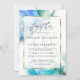 Convite para Casamento Moderno Fluid Watercolor - Espalhamento fluente de toalhetes de tinta alcoólica em tons de azul e lacre - com estampas de ouro realçadas com uma camada de ouro branco puro, enquadrada, para um apelo esotérico, um belo desenho abstrato moderno. A caligrafia manuscrita mostra a palavra "juntos" no topo acima dos detalhes do casamento - criamos que esta seja uma modelo de casamento fácil de personalizar.