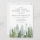 Get ready for an adventure with this "Last Trail Before the Veil" bachelorette party weekend invitation and itinerary! Perfect for a mountain getaway, hiking trip, or "Camp Bach" weekend, this double-sided design features a beautiful hand-painted watercolor evergreen pine tree forest. The front serves as a formal invitation for the bride-to-be, while the reverse side features a simplified, easy-to-read weekend schedule from Friday's campfire to Sunday's brunch. This rustic, earthy design is ideal for the outdoorsy bride who prefers mountain peaks and flannels over city lights. Easily personalize the names, dates, location, and itinerary details to fit your specific trail map!