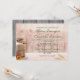 Um convite de casamento com um tema rústico do interior. Uma velha lata de leite enferrujada com uma linda flor amarela ao seu lado. Trigo e flores postos contra um padrão de madeira tênue.