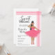 Convite de ilustração de moda de linda Latina Garota rosa 16º. O desenho apresenta ela em um lindo vestido rosa com detalhes de bordado. Ela também está usando óculos de sol e sapatos rosa. Ilustração de moda fofa para a garota feminina delicada. Um cartão de convite de ilustração fofa que toda a sua família e amigos vão amar.
