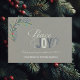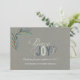 Um galho de louros com bagas e folhas, texto branco e azul cremoso que lê Paz e Joy, um fundo com a aparência do papel kraft de cinzas, e áreas que você pode adicionar uma mensagem e sua assinatura corporativa.