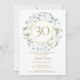 Uma grinalda decorativa de louro circunda uma borda de folha de ouro falso contendo o texto da idade de 30 anos. Abaixo, os detalhes do seu evento de aniversário são definidos em texto clássico elegante. O verso apresenta iniciais de monograma definidas dentro de uma grinalda floral e de folha de ouro falso correspondente. Criado por Thisisnotme©