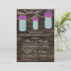 Lâmpadas de madeira e cordas, frascos-pedras com flores roxas leves, convites de festas de limpeza
