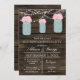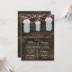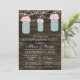Lâmpadas de madeira e cordas, jarras de pedras com flores de rosa claro, convites de festas de lavanderia