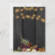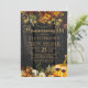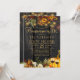Lindo laranja enferrujado e escuro burgundy outono caem flores e bordas de abóbora com cordas de luzes ouros brilhando sobre um fundo de madeira marrom escura fazer um charmoso convite de festas de churrasco para casa com uma tenda escrita manual com guião de ouro. ++++++++ Fácil de personalizar com seus detalhes! Adequado para o outono, fazenda rural russa em festas ao ar livre, ou churrascos.