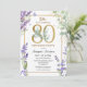 Celebre 80 anos de estilo com o nosso elegante "Convite à Lavanda de Aquarela com Festa de aniversário Púrpura!" Perfeito para uma festa de aniversário elegante e memorável. Ordene seu dia de hoje e faça sua celebração realmente especial! Note-se que os efeitos Dourados de brilho são simulados; não será usado ouro real no processo de impressão