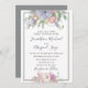 Um convite de casamento cristão, com uma citação inspiradora, retrata um quadro de cinza moderno com belos buquês florais de aquarela em tons de claro, rosa, pêssego e roxo. Ele apresenta uma parte da Gênese Versa Bíblia 2:24, "E os dois se tornarão um." Ele pode ser personalizado para os detalhes de sua escolha. Perfeito para primavera, verão, casamentos outono de outono.