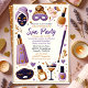 Perfeito para uma comemoração serena do Dia da Galentina, este convite apresenta uma série de ilustrações inspiradas no spa colocadas contra um pano de fundo cremoso, acentuado com lavanda branca e tons de ouro suave. Máscaras de beleza, um embrulho de pincel e frascos delicados de skincare são arranjados de forma artística, simbolizando uma noite de pampering e relaxamento. Rosas petitas e sotaques em forma de coração acenam com o espírito do Dia de Galentine, convidando convidados a participar numa noite cheia de bebidas, doces e amor próprio.