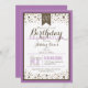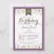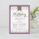 Personalize este convite de aniversário formal, elegante, lavanda roxo, branco, esticado castanho, confete adulto ou adolescente moderno. Ano perfeito para primavera, verão, outono ou festas de aniversário de inverno. Design de tendência neutra para homem ou mulher, menino ou menina. Na moda, convite clássico para qualquer aniversário de um marco adulto ou adolescente, incluindo 16, 18, 21rua, 30, 40, 50, 60, 70, 75, 80, 85, 90, 95, 100 anos.