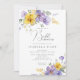 Lavanda Chá de panela Amarelo Roxo. Elegante chá de panela floral de aquarela com lindas flores pintadas manualmente a aquarela em tons de roxo e amarelo para primavera, verão e chá de panela de outono. Correspondente ao padrão floral no fundo. Você pode personalizar o texto, o estilo da fonte, a cor e o tamanho em frente e atrás do convite. Itens correspondentes disponíveis.