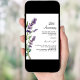 Um fundo branco decorado com flores lavandas de cor aquosa. Personalize e seus nomes e detalhes.