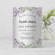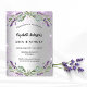 Um fundo de aparência pura prateada com brilho violeta, faíscas, flores de lavanda, flores e verde de eucalipto. Personalize e adicione seu nome e os detalhes da festa.
