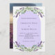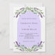 Um fundo branco e violeta decorado com flores lavandas, verde eucalipto e armação. Personalize e seus nomes e detalhes. Voltar: Personalize e adicione sua foto