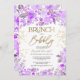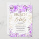 lavanda de verão Bonito roxo e ouro brilhando chá de panela floral com flores coloridas botânicas cor-de-rosa pintado e flores cor-de-rosa brilhante e confete com brilho dourado, com uma elegante e moderna letra de guião dourado.