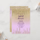 Um roteiro manuscrito de lavanda caligrava a tipografia moderna com lavanda e brilho dourado goteja Convites de chá de panela de casamento de luxo. Este elegante design de monograma é ideal para um evento de tendências e na moda. Personalize este design com sua mensagem e informações personalizadas. Todas as designs são impressas.