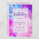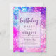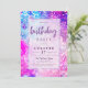 Um moderno, lavanda, roxo e chato inclui um design de mármore colorido falso com tipografia escrita à mão com brilho púrpura impressa. Este Convite de aniversário é o impressão perfeito para qualquer evento especial de uma mulher. Personalize este design com seus detalhes e monograma inicial.