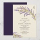 Clássico elegante lavanda floral elegante aquarela com monograma de iniciais com galhos e flores de caule botânico de lavanda roxo, folhagem verde e castanha e caligrafia elegante no marfim bege amarelo.
