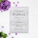 Um convite de casamento moderno, elegante e minimalista. Fundo de aspecto fino prateado decorado com lavanda e pó fino de cinza prateada. Personalize e adicione seus nomes e detalhes do casamento. Letras pretas coloridas.