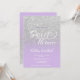 Um moderno, bonito e falho chá brilhante prateado com bloco de cor roxo convite de aniversário Sweet 16 com tipografia elegante com padrão ombre roxo. Perfeito para uma princesa Doce 16.