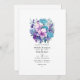 Lavanda e aqua convite para o casamento floral. O código QR no verso direciona para o seu local de casamento onde o pessoas pode aprender mais e rsvp.