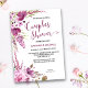 Casais florais de aquarelas convite a Chás em tons de rosa, mauve e roxo. Os arranjos florais incluem manchas de lavanda, lilás floridas, flores e verde-mutado. O Chá de casais é escrito em uma caligrafia elegante de script e colorido para corresponder aos nomes do casal. O modelo está pronto para personalizar o convite com seus próprios detalhes. Procure na nossa loja itens de coordenação.