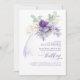 O elegante, refinado e impressionante convite para o casamento apresenta flores românticas, escuras e roxas, de cor d'água. A folhagem dourada adiciona um toque de luxo, enquanto a caligrafia boho adiciona um toque pessoal ao seu dia especial.
