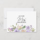 Design floral rústico simples e elegante de cor d'água (cor d'água) verde verde, lavanda, roxo, violeta, lilás, cor-de-rosa pincel, pêssego, rosas de flores brancas/pénia sobre fundo branco e letras negras. Convites de chá de panela de casamento deliciosos para o tema do primavera ou verão. Cartões de fora perfeitos. A parte traseira do cartão tem o nome da futura mrs.