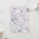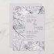 Esses convites para casamento de 5" x 7" apresentam um design de folha abstrato em tons de cinzas poeirentos e lavanda com os acionistas, "Nós convidamos você a celebrar o casamento de, " a noiva e o noivo primeiro e sobrenomes, data, hora, nome e endereço do local do casamento, "recepção a seguir."