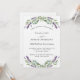 Um fundo branco decorado com flores lavandas e verde de eucalipto. Personalize e seus nomes e detalhes.
