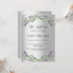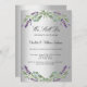 Um fundo de aparência pura prateada decorado com flores de lavanda e verde de eucalipto. Personalize e seus nomes e detalhes.