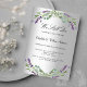 Um fundo de aparência pura prateada decorado com flores de lavanda e verde de eucalipto. Personalize e seus nomes e detalhes.