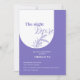 Ponha o tom para uma noite mágica com a nossa "Noite de Lavanda Antes do Convite". Apresentando um arco cativo enfeitado com uma delicada flor de lavanda e matizes roxas ricas, esse convite exude elegância e romance. Abaixo da arca encantadora, os detalhes do evento são apresentados elegantemente, acompanhados pelos nomes da noiva e do noivo, acrescentando um toque personalizado a essa ocasião especial. Convide seus convidados para se juntarem a vocês por uma noite inesquecível cheia de amor e antecipação.