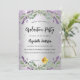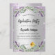 Um convite moderno e na moda. Um fundo de aparência falsa de prata com faíscas violetas, flores de lavanda, flores e verde de eucalipto. Personalize e adicione o nome e os detalhes da festa.