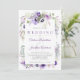 Flores Roxas, Lavandas e Branco de Aquarela Convite para Casamento. Layout de design moderno usando caligrafia de ornamentado e fontes padrão. As caixas de texto são fáceis de personalizar com suas próprias informações.